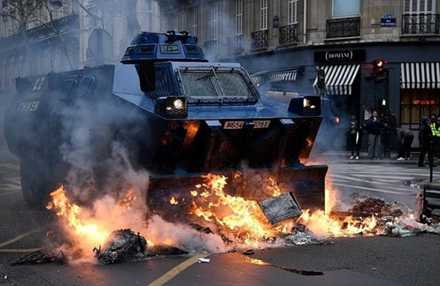 ફ્રાન્સમાં હિંસક વિરોધ: રેન્સમાં બસને આગ ચાંપી દેવામાં આવી હતી