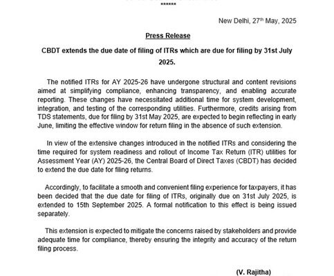 નવી દિલ્હી/મુંબઈ, ઈન્કમ ટેક્સ વિભાગે નાણાકીય વર્ષ 2024-25 (AY 2025-26) માટે ઈન્કમ ટેક્સ રિટર્ન (ITR) ફાઇલ કરવાની છેલ્લી તારીખ 31…