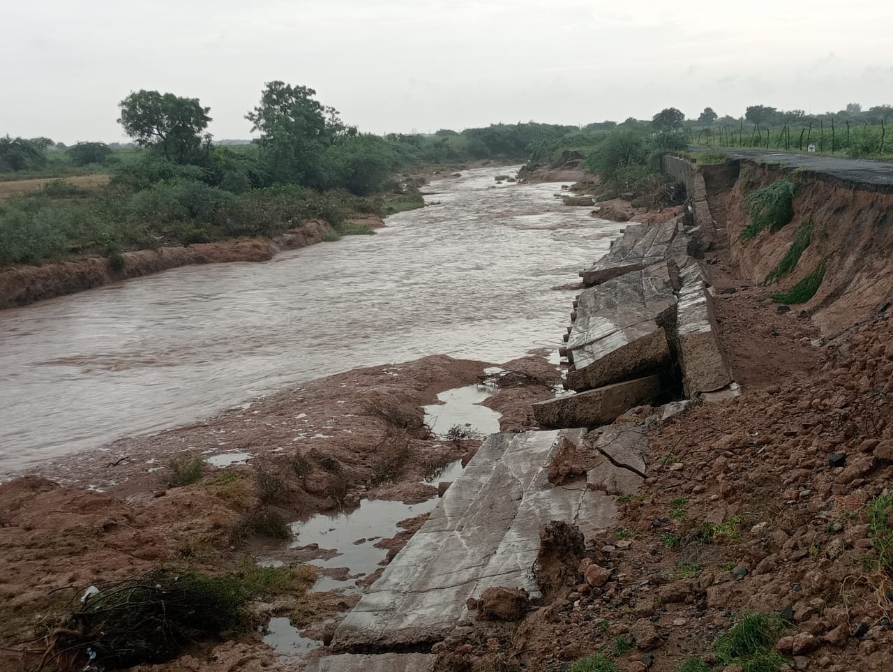 રાભડા-કણકોટને જોડતા માર્ગ પર રામતલિયુ નદીની નજીક રસ્તાની બાજુમાં આવેલી એક દીવાલ અચાનક તૂટી પડવાથી રસ્તાનો મોટો ભાગ ધોવાઈ ગયો હતો. દીવાલ તૂટી જવાથી અને રસ્તો ધોવાઈ જવાથી વાહનવ્યવહાર માટે ગંભીર જોખમ ઊભું થયું હતું, જેના કારણે કોઈ મોટી દુર્ઘટના થવાની સંભાવના હતી.