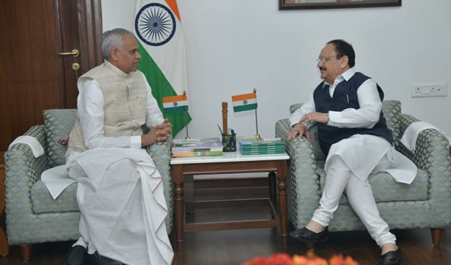 રાજ્યપાલશ્રી આચાર્ય દેવવ્રતજી સાથે કેન્દ્રીય મંત્રીશ્રી જગત પ્રકાશ નડ્ડાની શુભેચ્છા મુલાકાત
