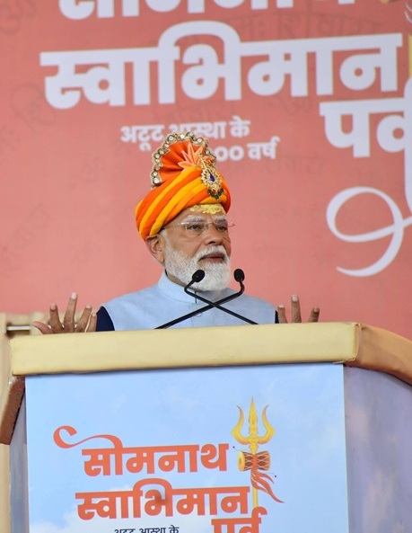કર્યાના ૧૦૦૦ વર્ષ પૂર્ણપૂ ર્ણ થવાના પ્રસંગેસં ગેસોમનાથ સ્વાભિમાન પર્વને ર્વ સંબો સં ધતા, પ્રધાનમંત્રી મં મોદીએ કહ્યું કે